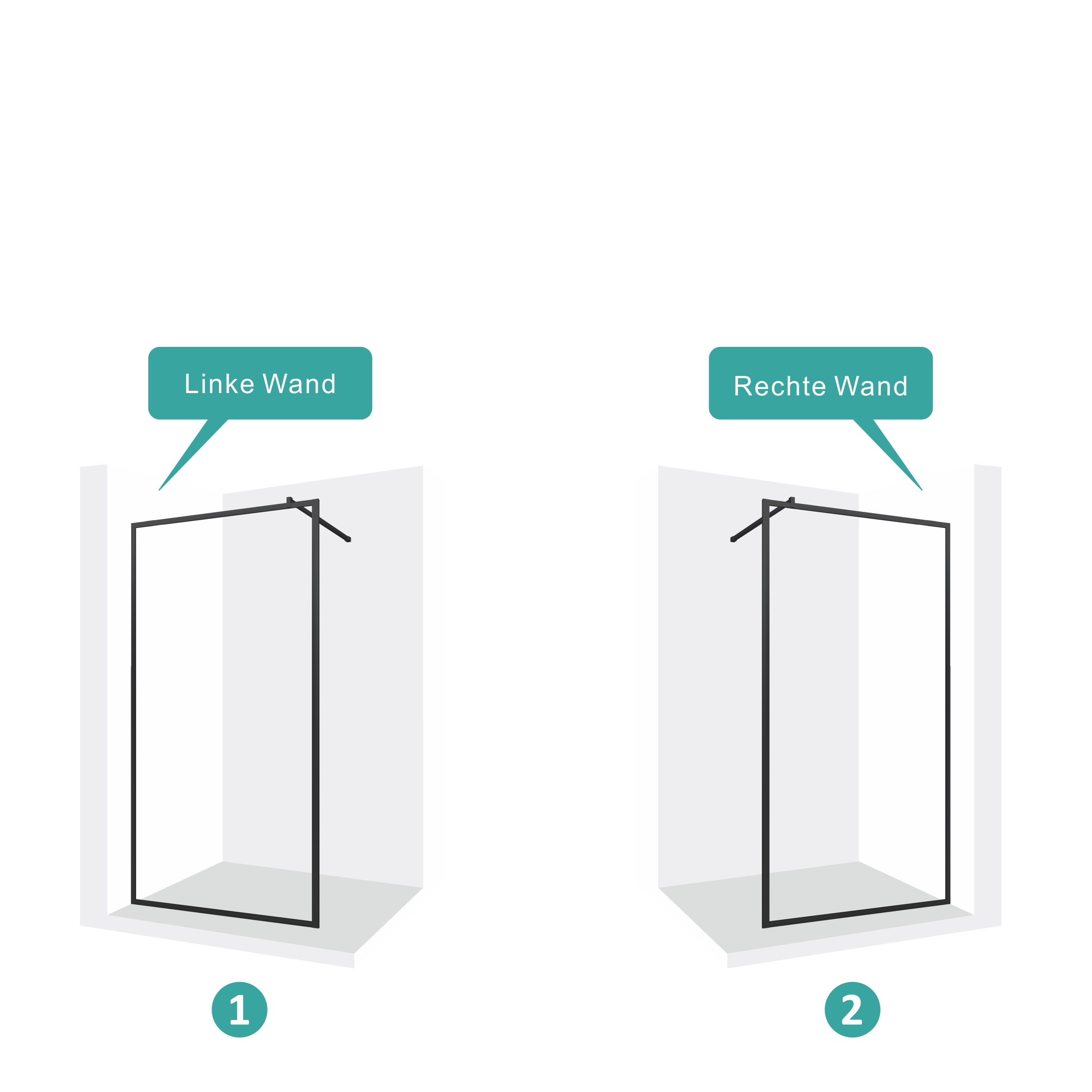 Walk In Dusche Gianna-R BLACK aus 8 mm starkem durchsichtigem ESG Sicherheitsglas