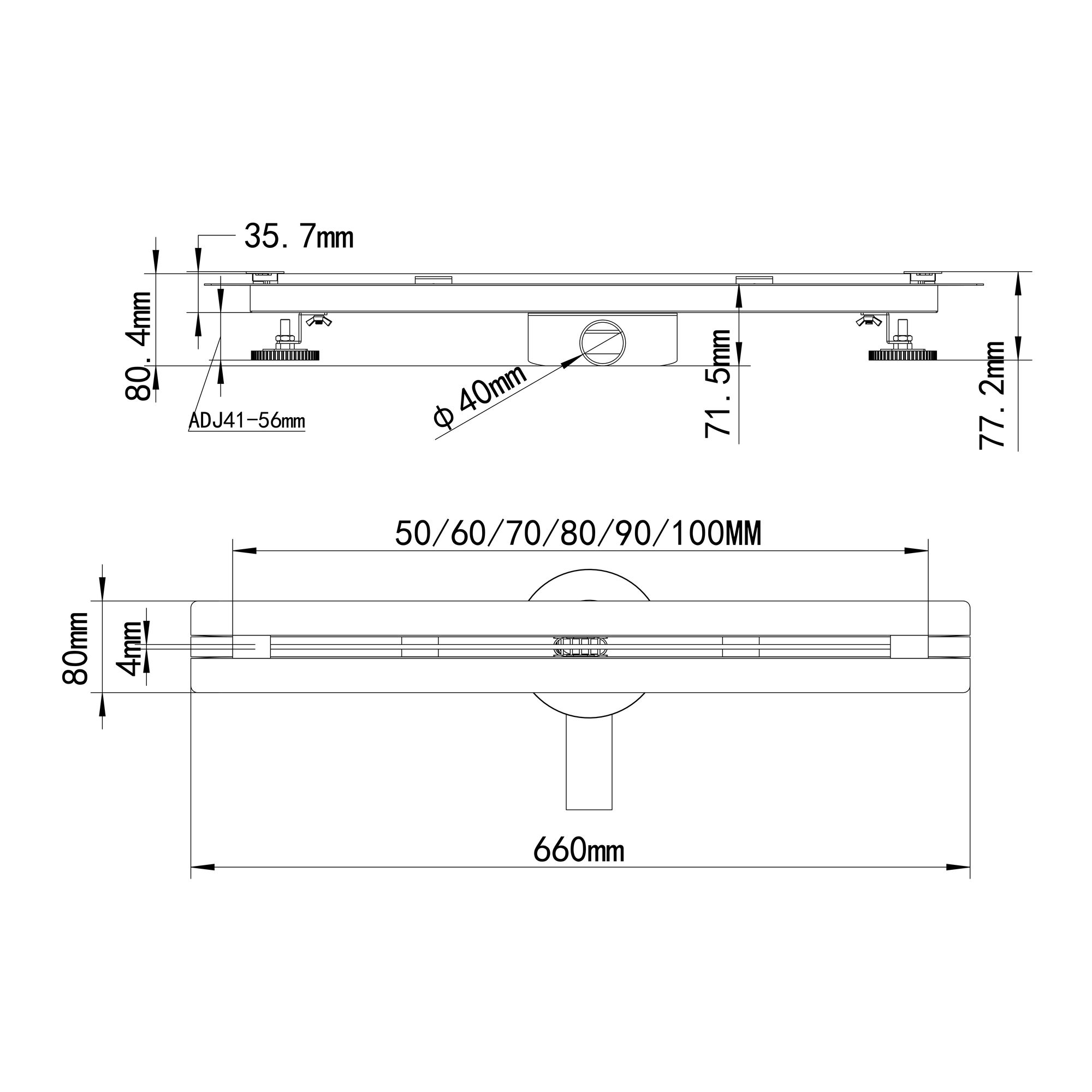 Die flache Duschrinne B9 ist flexibel einsetzbar und lässt sich durch ihre Höhenverstellung von 68 mm bis 80 mm optimal anpassen. Sie ist in verschiedenen Längen erhältlich: