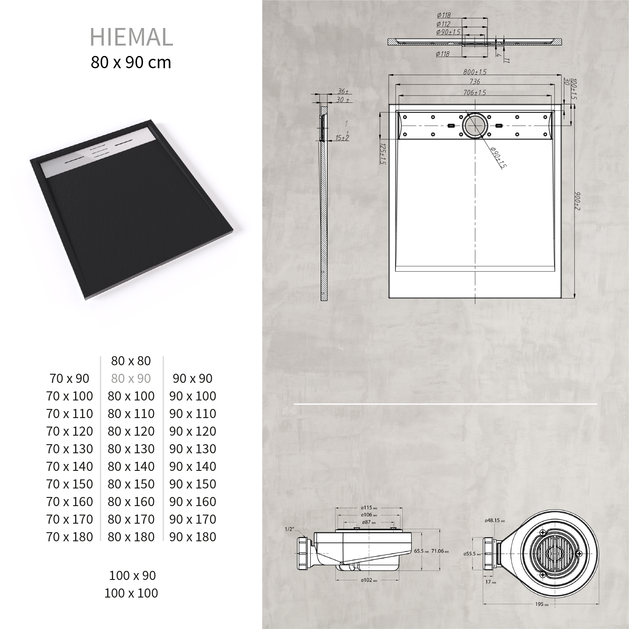 Número de producto: dbSMCHiemalSchwarzINOX-80x90 cm